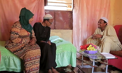 Sweet Arabian exchange college babes share a massive dick