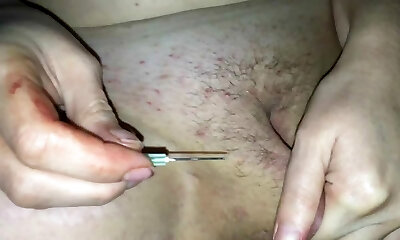 Real Joy Button piercing and through with a needle