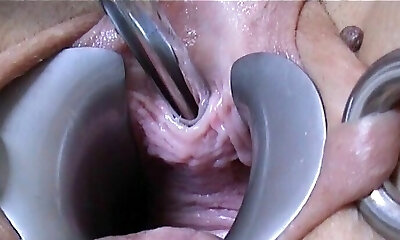 Cervix stretching with speculum and man milk insertion uterus