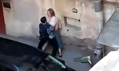 Spying a fat gal get fucked from balcony