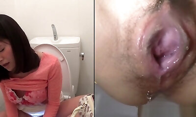While pissing on toilet girl
