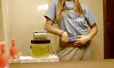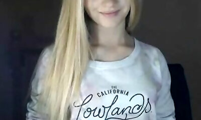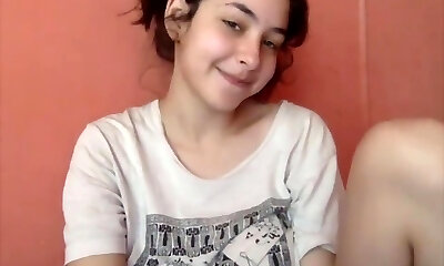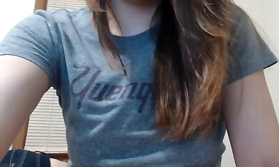 19 year old busty webcam girl with innocent face touches her large natural ti